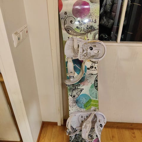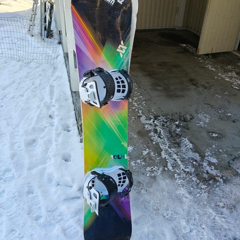 Myydään 135cm lumilauta + lumilautapussi. Käytetty kunto! Toisen siteen pienempi side katkennut. Pohja on nähnyt elämää, mutta se on huollettu 2024, jonka jälkeen laskettu pari kertaa. Mielestäni laudalla on vielä laskuvuosia edessä!