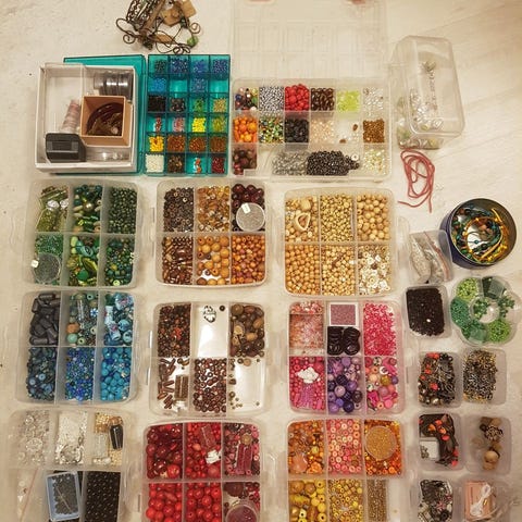 Paljon uusia lasihelmiä ym tarvikkeita esim. helmilaukkujen tekoon.