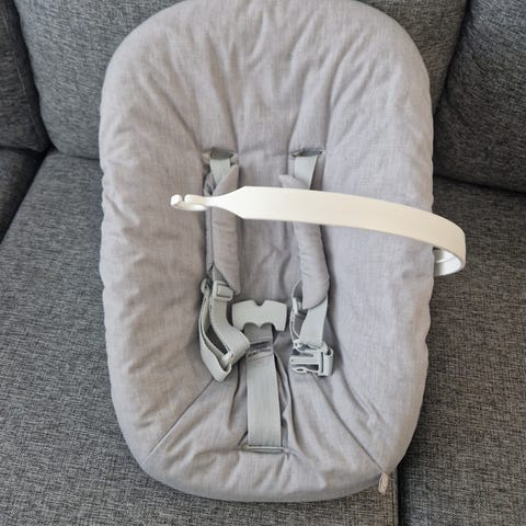 🤍Myynnissä Stokke Tripp Trapp -tuolin newborn set istuin beigellä kankaalla sekä vaihtopäällinen 🩷🩶vaaleanpuna/harmaa ruudullinen🩷🩶