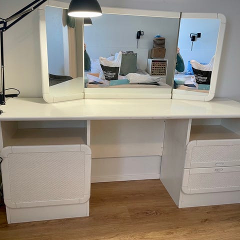 Hakusanat: antiikki, antiikkinen, vintage, retro, vanha, kaapit, kampauspöytä, peili, art deco, vetolaatikot, 1920-luku, 1930-luku, vintage huonekalut