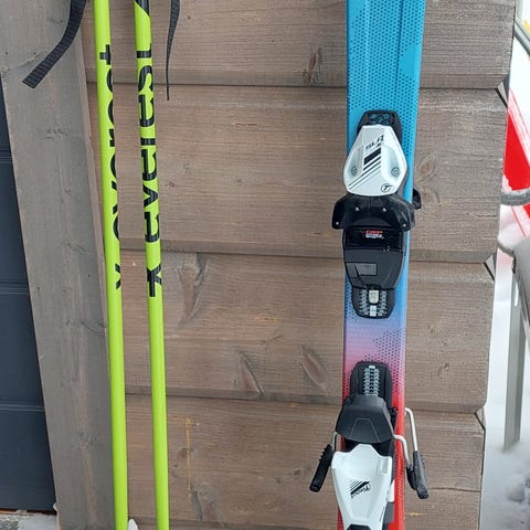 Lasten laskettelusukset, joissa kiinteät säädettävät siteet. Pituus 105cm. Käytetyt mutta vielä ihan hyvät sukset käyttöön. Vain nouto.