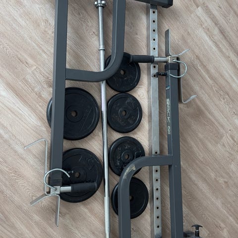 Erittäin monipuolinen kuntokeskus. Ylä- ja alatalja, butterfly, smith, erillinen 20kg olympiatanko, levypainoja yhteensä 165kg. Mukaan lukkoja ja vetokahvoja, ojentajaköydet. 30kg säädettävät käsipainot sekä selkä/vatsapenkki. Jäi vähälle käytölle kun tuli otettua salijäsenyys. Vain nouto mattisenlahdesta