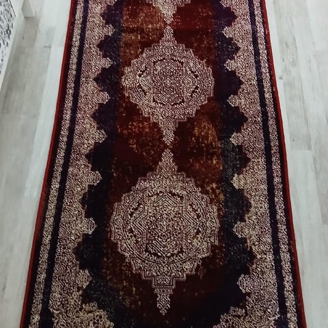 Vaalean harmaa pitkä käytävämatto. Kestävää ja helposti puhdistuvaa puuvillamateriaalia.