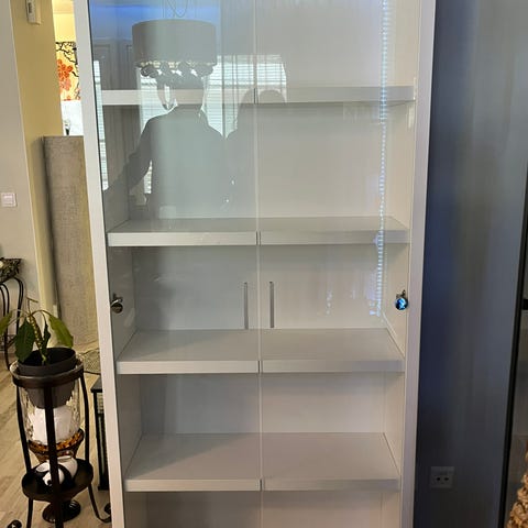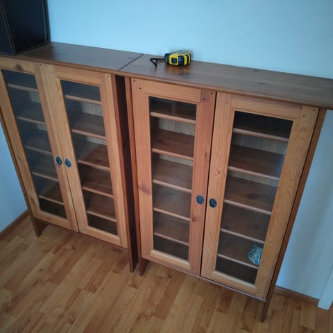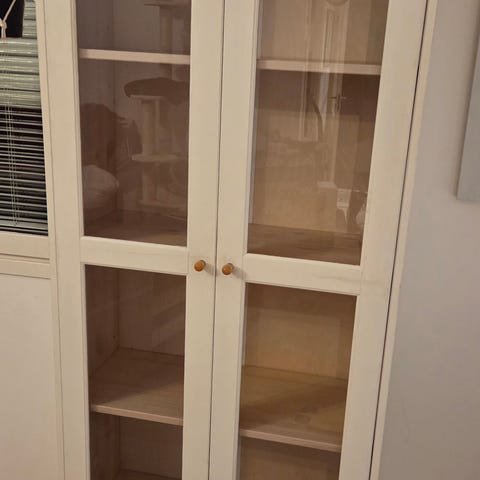 Aito täyspuinen, viilutettu lasivitriini. Lasit ehjät. Muutoinkin ikäisekseen oikein hyvässä kunnossa.