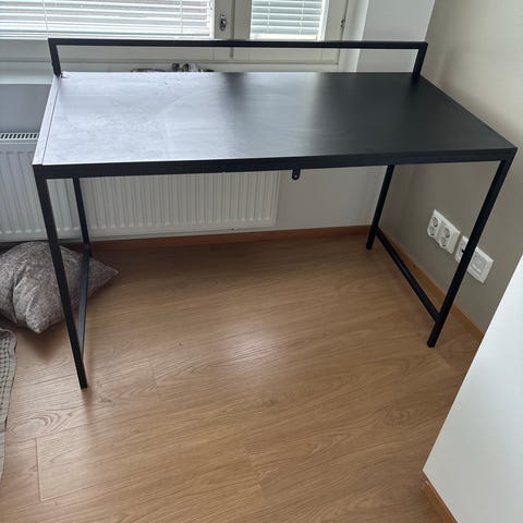 Myydään tarpeettomana tyylikäs ja siisti JYSK-työpöytä. Pöytä on tukeva ja sopii erinomaisesti niin työpisteeksi kuin eteis- tai sivupöydäksikin.
