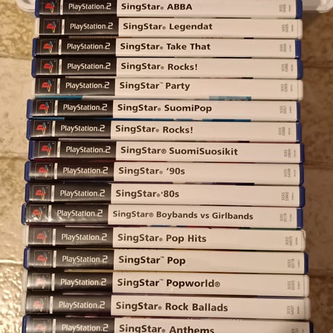 SingStar SuomiHitit, ABBA ja Suomipop pelit playstation 2 konsoliin. Ei ole vuosiin pelattu, mutta toimivat kun viimeksi kokeiltiin.