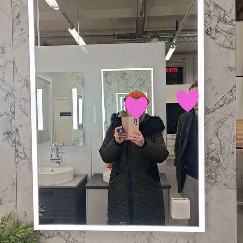 Kuvien mukainen kylpyhuonepeili ylimääräisenä. Ovh. yli 300€. Suunnitelmat muuttui niin jäi ylimääräiseksi/ei mennyt paikoilleen. Paketti avattu vain myyntikuvia varten.