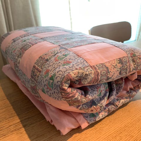 Tilkkupeitto / tilkkutäkki / viltti joka on vanhusten ompelema. Hyvä joko viltiksi picnikille tai festareille tai lapsen sänkypeitoksi tai vauvan alueeksi lattialle.