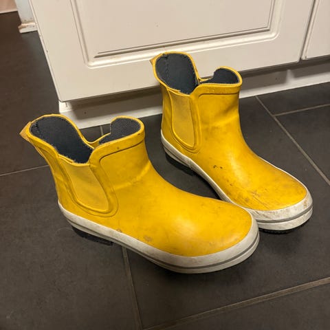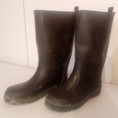 Myydään ehjät pinkit kumisaappaat koossa 36. Pintaan on jäänyt tummia pinttymiä, muuta huomauttamista en näe.