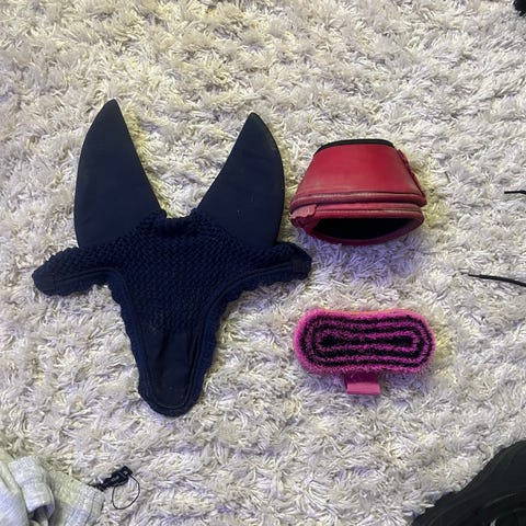 Esim ohjat, otsapantoja, poskihihnoja, turparemmejä