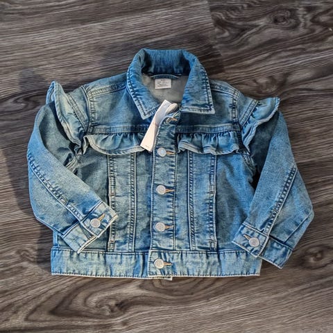 Lindex farkkutakki koossa 92. Reilu koko, mahtui hyvin vielä 98 kokoa käyttävälle. Kunto tosi siisti. Toisen hihan takana pieni haalistuma.
