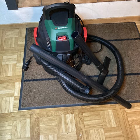 Märkä-kuivaimuri. Ruostumattomasta teräksestä valmistettu 20litran säiliö ja muovinen yläosa. Laitteessa on letku, putket ja lattiasuulake. Sopii sekä kuivan lian että nesteiden imurointiin esimerkiksi autotallissa, varastossa tai kodin yleissiivouksessa. Kuvissa näkyy säiliön sisäpuoli ja suodatinjärjestelmä.