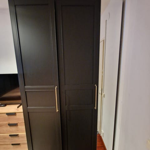 Valkoinen Pax vaatekaappi. Peiliovet.