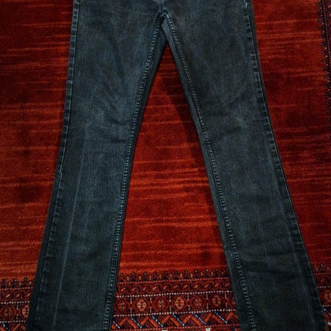 Naisten mustat housut/farkut koko 27/32. Käyttämättömät. Nappi, vyölenkit.