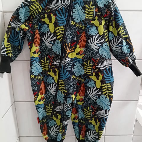 Hyväkuntoinen lasten kevyt haalari. Koko 86cm. Pientä kulumaa lahkeissa (näkyy kuvissa).