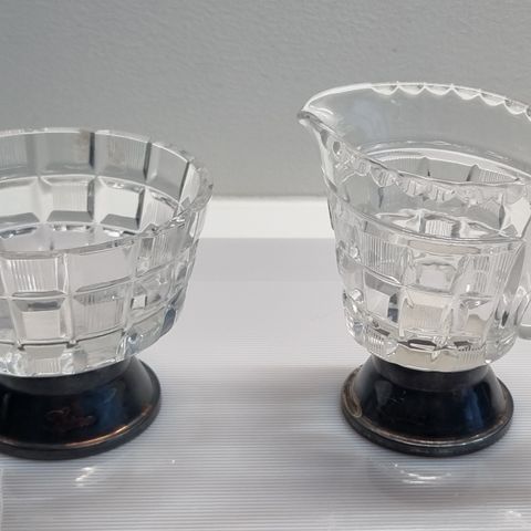 Riihimäen lasin Polar sokerikko ja kermakko. Kristallia. Design Aimo Okkolin.