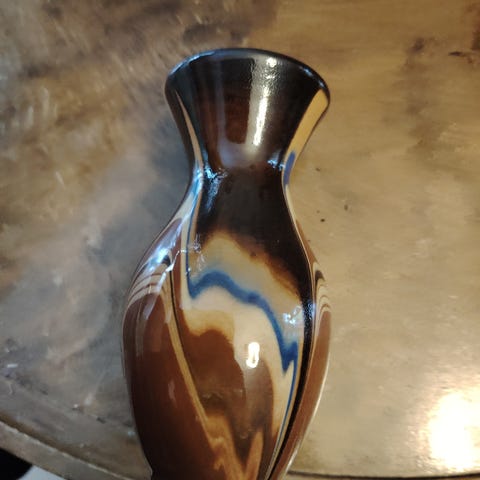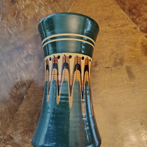 Bulgarialainen Troyan-keramiikkamaljakko. Korkeus 205mm halkaisija 105mm