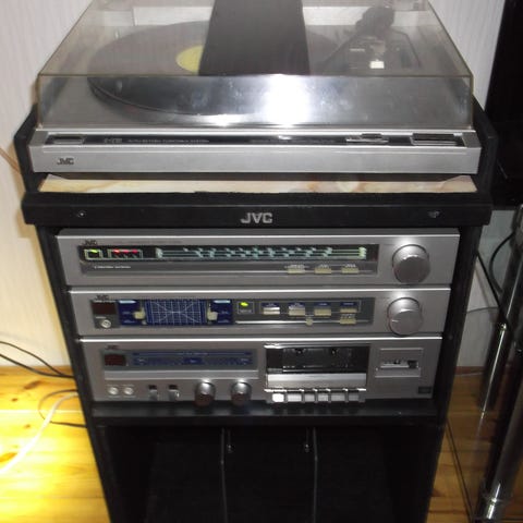 Täysin toimiva vinyyli ja kasetti soitin kaiuttimilla.