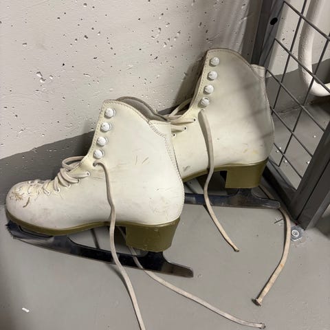 Jackson Ultima Evo taitoluistimet. Koko 245. Luisteltu muutamia kertoja hallissa. Ei murtumia tms. Ainoa miinus muutama esteettinen naarmu jotka näkyvät kuvissa. Ostettu 09/2025 Tampereen Golden Skatessa missä terät kertaalleen teroitettu (ura 15)