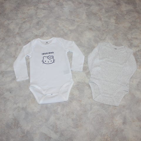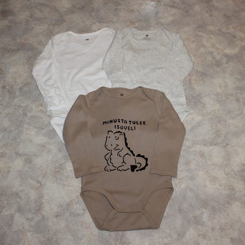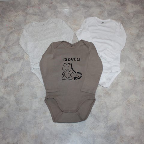Uusi H&M body, johon käsinpainettu volkkari auto kuva ja pikkuveli teksti.
