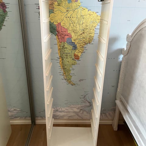 Hauska hyllykkö vaikka lastenhuoneeseen. Pientä käytönjälkeä on, ”katon” kiinnitysruuvi on kahdessa kohtaa tullut vähän liian pitkälle, kuvista näkee. Mitat kuvissa. Valmistettu mdf:stä tai vastaavasta.