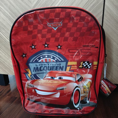 Cars Salama McQueen lasten kylmälaukku / pieni kassi / pieni reppu. Laukku on auton muotoinen ja siinä on Salama McQueen -aiheinen kuvitus. Pinta on sileää, helposti pyyhittävää materiaalia ja sisäosa on lämpöeristetty, mikä sopii eväiden ja juomien viileänä pitämiseen. Laukussa on vetoketjusulku ja kantokahva päällä. Sisäpuolella on nimilappu omistajan tietoja varten. Soveltuu erityisesti lasten eväslaukuksi päiväkotiin, kouluun tai retkille.