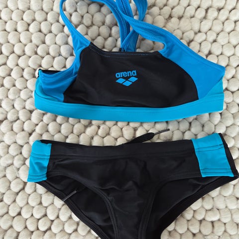 Tyttöjen sporttiset bikinit klooria hylkivästä Infinitex Fitness Eco materiaalista. sopii sekä uimahalliin että rannalle valmistettu osittain kierrätetyistä kalastusverkoista ja muista kierrätetyistä nyloneista klooria hylkivää Infinitex Fitness Eco-materiaalia sivussa ikoniset kolme raitaa 78% kierrätettyä nylonia, 22% elastaania. Teknologiat: INFINITEX®.