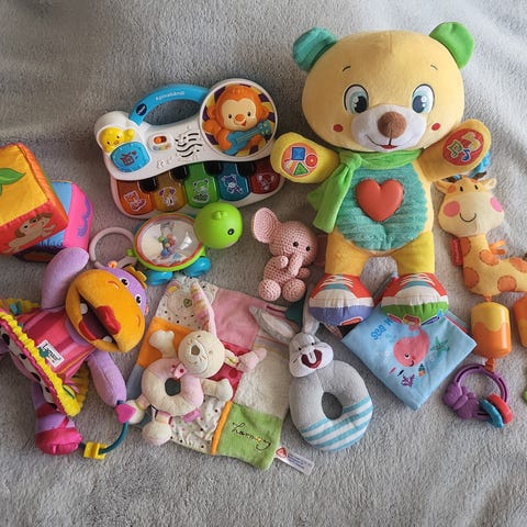 Kasa erilaisia leluja vauvasta pikkulapseen.