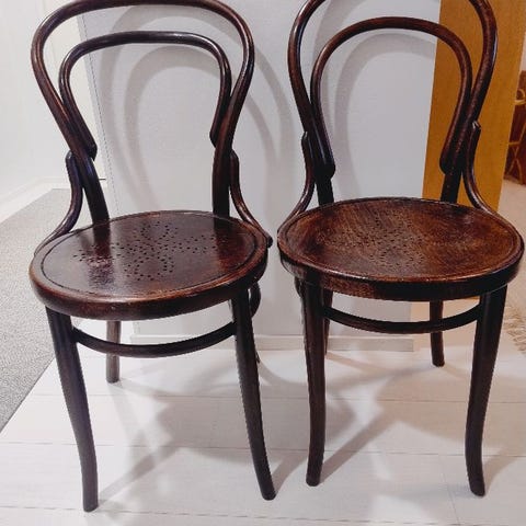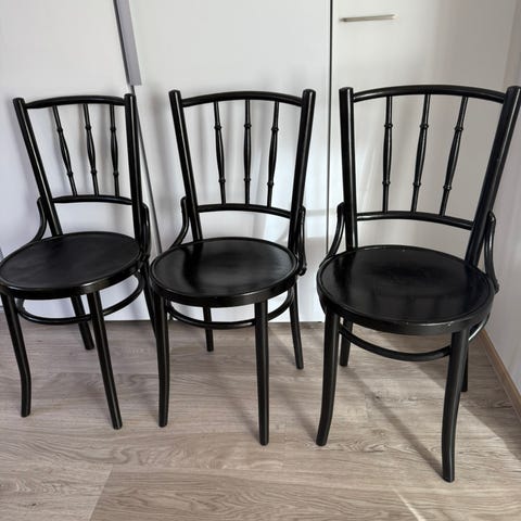 Neljä kaunista vanhaa suoraan käytöstä poistettua vintage Wieniläistuolia etsii uutta kotia.