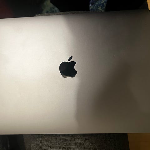 Apple MacBook Pro kannettava tietokone. Hopeanvärinen alumiinirunko, taustavalaistu näppäimistö ja monikosketusta tukeva ohjauslevy. Näytön yläreunassa on sisäänrakennettu kamera. Käyttöjärjestelmänä macOS Big Sur. Mukana virtalähde ja latausjohto.