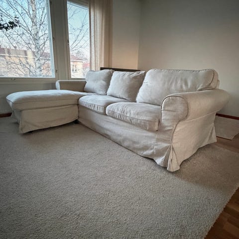 Myydään hyväkuntoinen Ektorp 3:n istuttava sohva divaanilla. Ostettu reilu pari vuotta sitten, mutta myydään pois koska sohva on liian iso nykyiseen asuntoon.