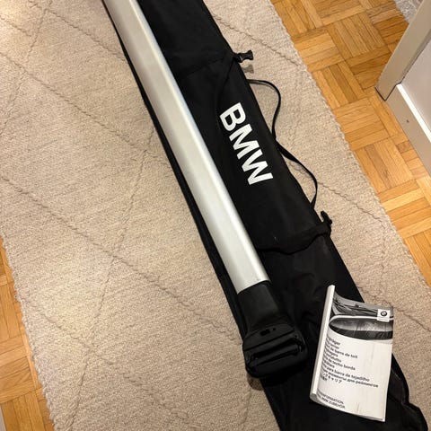 BMW kattoteline 5-sarjan henkilöautoon. Alumiiniset poikkipalkit, joissa muoviset päädyt ja lukittavat kiinnikkeet. Sopii auton kattokaiteisiin tai kiinnityspisteisiin mallikohtaisesti. Soveltuu esimerkiksi suksiboksin tai muiden kattotelineeseen kiinnitettävien kuljetustarvikkeiden asennukseen.
