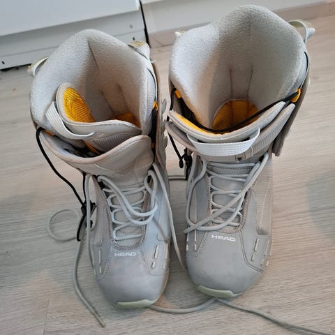 Lumilautakengät, koko 25, väri mustavalkoinen. Nauhakiinnitys edessä. Pehmeä ja mukava sisus. Siistit, vähän käytetyt. Pieni punainen jälki toisessa kengässä.