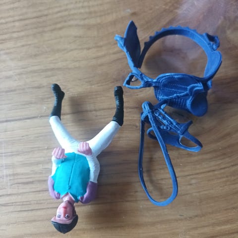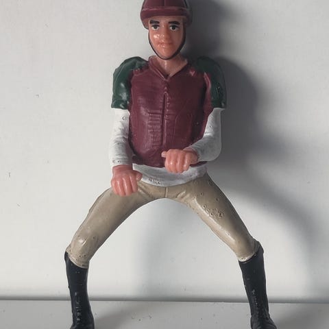 Ratsastaja tarvikkeineen: satula ja suitset