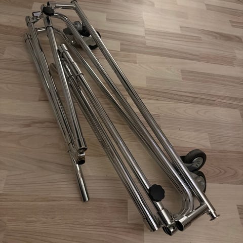 Kahden tangon rekki. Muovia. Nouto. Käteinen.