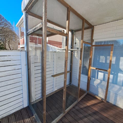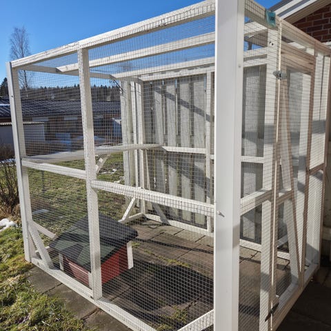 Metallinen ulkoaitaus eläimille. Aitauksessa on verkkomaiset seinät ja ovi, jotka soveltuvat esimerkiksi koiralle tai muille pienille ja keskikokoisille eläimille. Sopii pihalle tai terassille rajatuksi ulkoilualueeksi. Aitaelementit ovat metallirunkoisia ja kestävät ulkokäyttöä.