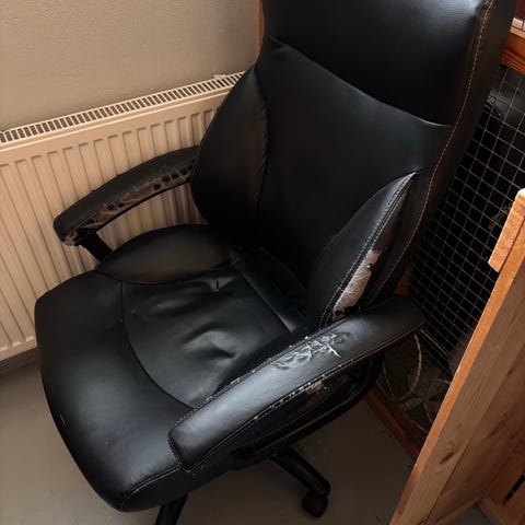 Annetaan! Toimistotuoli josta saa säädettyä korkeutta. Renkaat pyörii heikosti, mutta muuten hyvässä kunnossa.