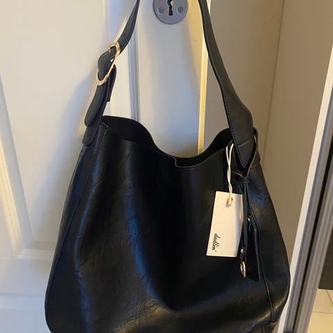 Käyttämätön olkalaukku, pinta hyvä pitää puhtaana, 2 osastoa vetoketjulla ja sisällä toisessa vetoketjutasku ja toisessa avotasku. Ulkopuolella vetoketjutasku ja toinen nepparilla. Jatkettava olkahihna. Hinta sisältää toimituksen postin kautta.