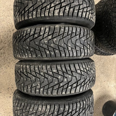 Myyntiin viikkositten alta pois otetut hyvät nastakumit. Nastoja puuttu yhestä renkaasta kaksi, muuten kaikki tallella. Pintaa reilusti, ei uusille häpeä. Syy vaihtoon oli ikä, paistettu vuonna -16 viikolla 24. -22 vuoteen asti säilytetty lämpösessä hallissa. Renkaat teknisen käyttökkänsä päässä, mutta ehjät ja toimivat pintaa n.8mm kaikissa renkaissa. Vain nouto.