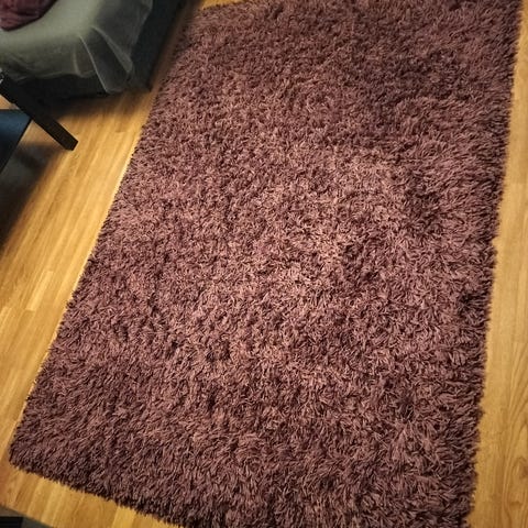 Nukkamatto, väri vaaleanvioletti. Pehmeäpintainen ja pitkäkarvainen matto, sopii esimerkiksi olohuoneeseen, makuuhuoneeseen tai lastenhuoneeseen. Materiaali on synteettinen kuitu (esim. polyesteri), joka tuntuu pehmeältä jalan alla.