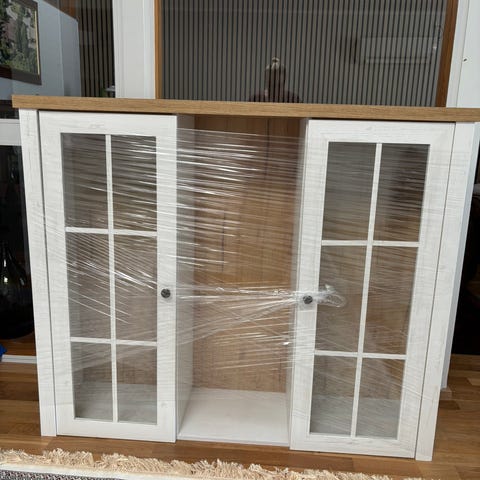 Matala lasiovilla oleva kaappi. Ylähyllyllä ei takaseinää, alhaalla on. Haku kausala. Maksu mb. Lisäkuvia saa kysymällä.