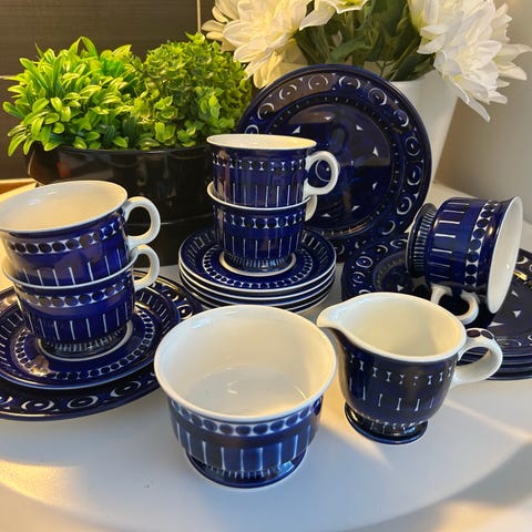 Kunnossa olevat Valencia teekupit ja lautaset.