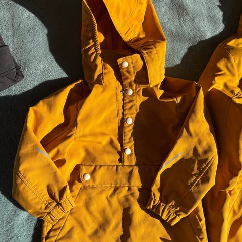 Ihana Reima anorakki. Vähän käytetty. Väri on lämmin keltainen, enemmän kuin ensimmäisessä kuvassa.