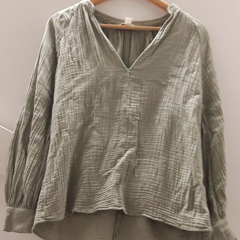 Kiva väljän mallinen kesäpaita, kaappiin unohtunut, vain käyttöönottopesty. Mukavaa, lämpimälläkin hengittävää maastonvihreää 100% puuvillamusliinia. Malli käy hyvin myös vauvamasun kanssa, itse ostin siihen käyttöön.