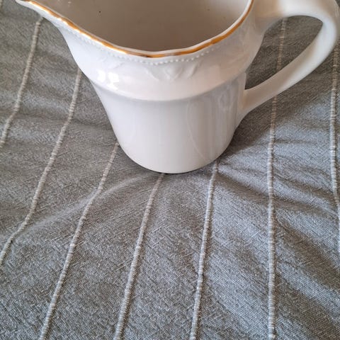 Arabia valkoinen kulta reunainen kastikesetti ja tarjoiluastiat