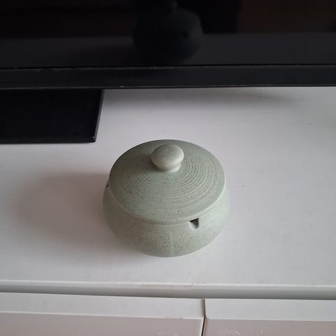 Erityinen vintage-tuhkakuppi pronssinvärisestä metallista, muotoiltu lentävän hyönteisen muotoon.Tämä koriste-esine yhdistää toiminnallisuuden leikkisään ja hieman omaleimaiseen muotoiluun.Lentävä hyönteinen on luonnollisen tarkasti tyylitelty, siivissä on yksityiskohtaiset suonet ja koristeelliset motiivit. Kehon ja jalkojen muoto on plastisesti tehty, mikä antaa kokonaisuudelle elävän ja lähes veistoksellisen ilmeen.Yläosa on saranointi, jolloin tuhka-astiaa voidaan avata huomaamattomasti. Suljettuna esine näyttää koriste-esineeltä; avattuna se paljastaa käytännöllisen toimintansa. Lämmin pronssinvärinen patina vahvistaa vintage-luonnetta ja antaa teokselle viehättävän, kuluneen ilmeen.On kauniissa vintage-kunnossa, kevyillä käytön merkeillä ikään sopivasti.Huomionosoitteena ja koristeellisena keräilyesineenä, ihanteellinen ainutlaatuisten tupakkatarvikkeiden, kuriosojen tai eläinaiheisten design-esineiden ystäville. Merkintä 'made in Italy'.Graag de foto's nauwkeurig bekijken, ze maken deel uit van de beschrijving.Tuote lähetetään huolellisesti paketissa, vakuutettuna ja seurannalla.Mitat :Pituus : 20 cmLeveys : 12 cmKorkeus : 8 cm