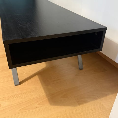 Muuten hyväkuntoinen tv-taso, mutta puisessa sisätasossa käytön jälkiä.