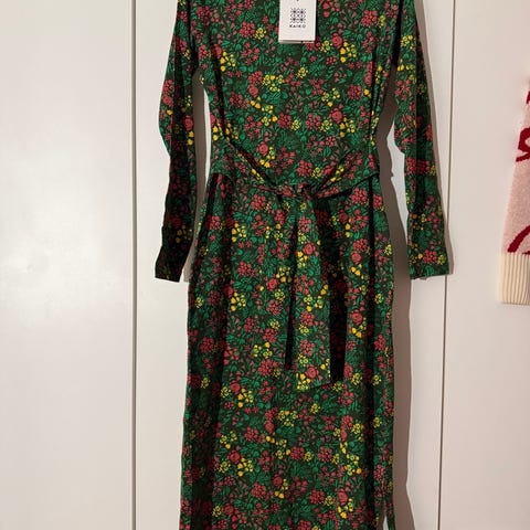 Suomalaisen vastuullisen Kaikon suosittu malli wrap midi dress upeaakin upeammassa jo loppuunmyydyssä Marigold kuosissa.