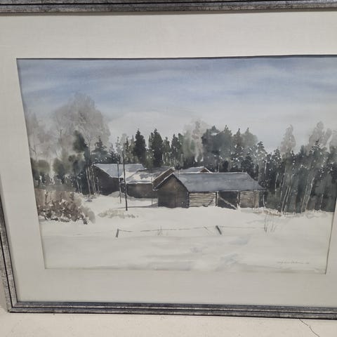 Huom. Lasin alle kehystetty teos on hankala kuvattava, mistä johtuen molemmissa kuvissa lasin heijastusta.