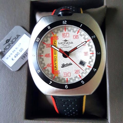 Uusi. Vähittäishinta €560,-. Loppuunmyyty maailmanlaajuisesti, olemme ainoa yritys maailmassa, joka myy tätä harvinaista mallia.Olemme jalokiviliike, joka myy ainoastaan uusia, eksklusiivisia tuotteita. Kaikilla tuotteillamme on täysi, virallinen takuu.Ainutlaatuinen kellonmalli tunnetulta brändiltä Pégoud, joka on tunnettu eksklusiivisista lentäjäkelloistaan jo 1900-luvun alusta. Kunnianosoitus WWI:n lentäjäisoille Adolphe Célestin Pégoudille.Erikoismalli automaattisella 22 jalokiven liikkeellä. Mukava nahkaranneke on osittain irrotettavissa alaosasta.Kotelon materiaaliRuostumaton teräsHihnien materiaaliLaadukas nahka. Mukava vaihdettavaLasin materiaaliKuperlaki, vahva naarmuuntumista vastustava mineraalilasiLiikeAutomaatinen 22 jalokiveäKotelon halkaisija (ilman kruunua)44,5 mmPakkausTäydellinen laatikossa kaikkine virallisine asiakirjoineenToimitus vakuutuksella ja Track and Trace -koodilla.Kaikki uutta.
